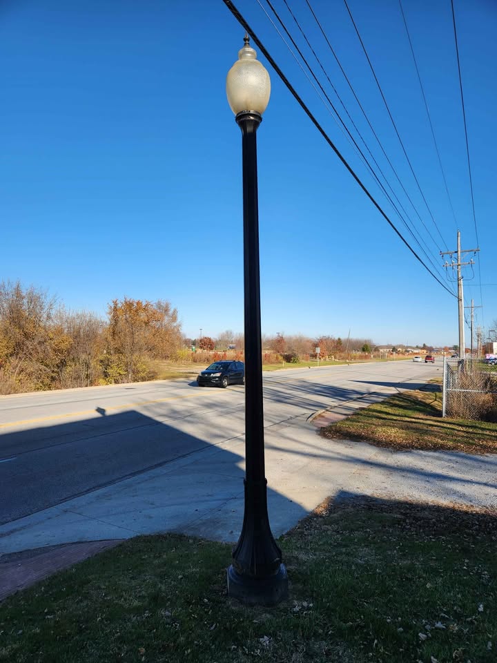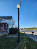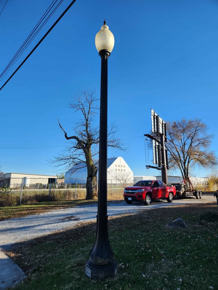 Working Cast Iron light pole 12′. Have 3 different size plastic tops for it. 2 of the tops have cracks/chips though.  Very Heavy (around 500lbs). We can deliver to the Chicago Land, Milwaukee, Madison, Kankakee,  Minneapolis Areas. Any questions or concerns text us! Thanks