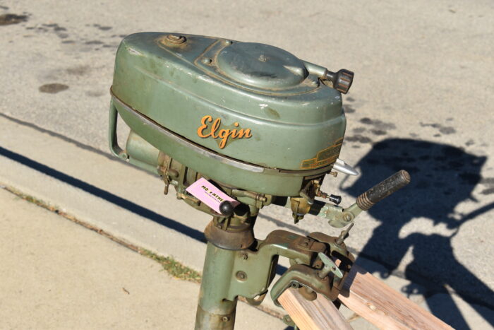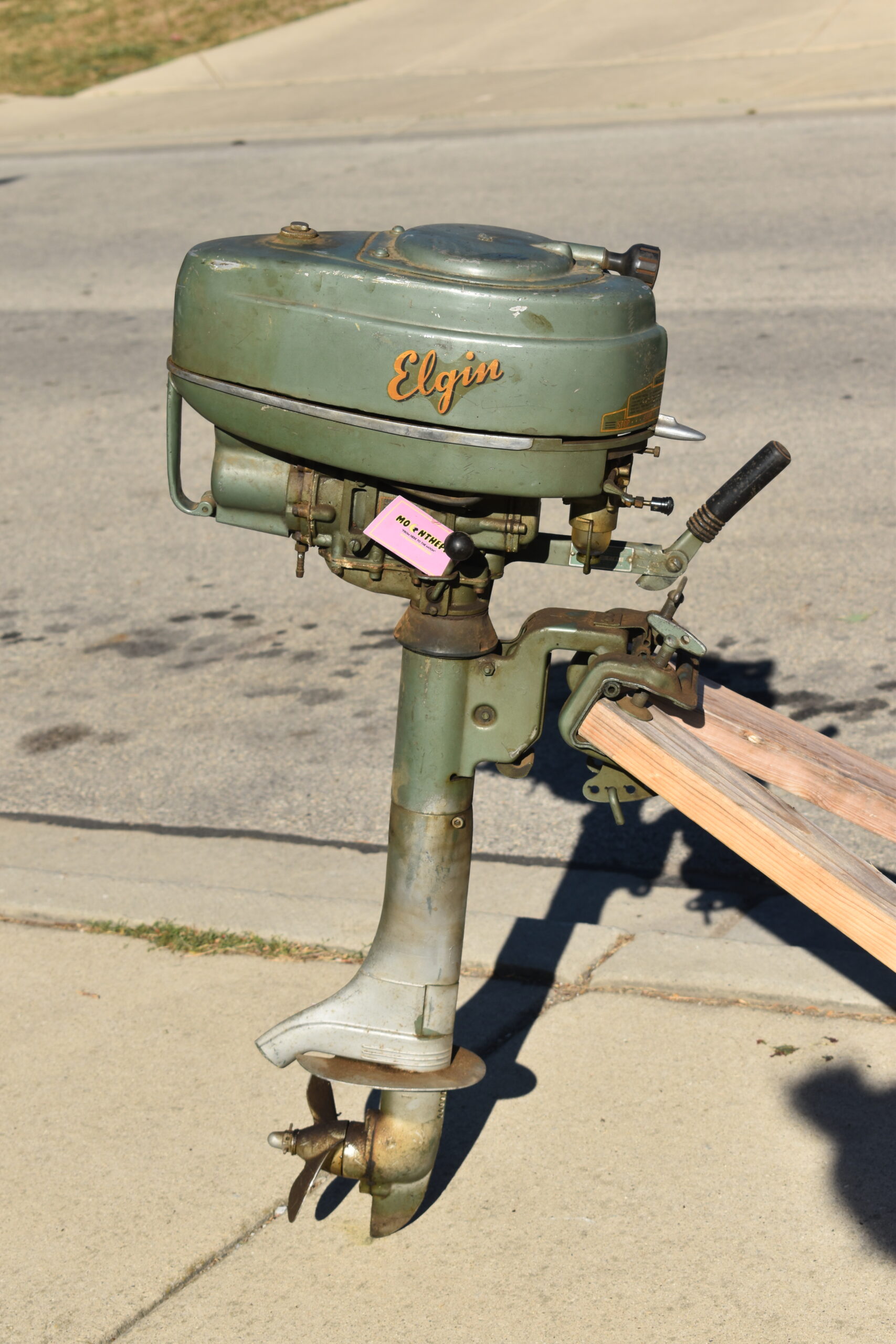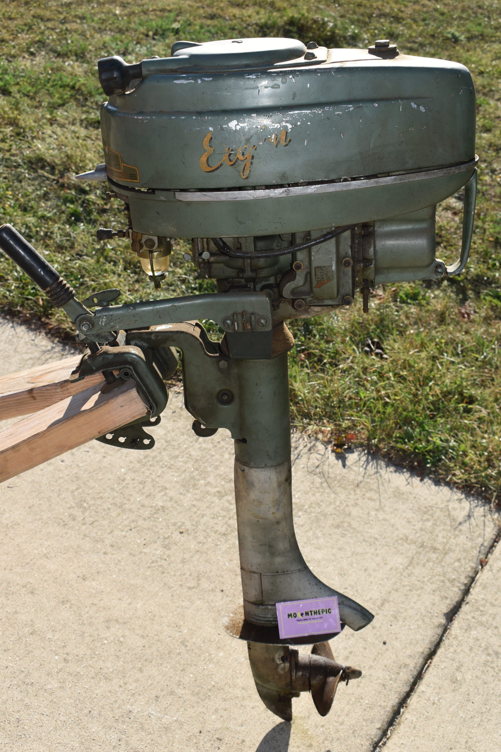 Vintage Elgin 571.58751 Outboard motor. Turns over. Has compression. Fuel tank clean inside. Have not tried to start. Overal Good condition given the age.