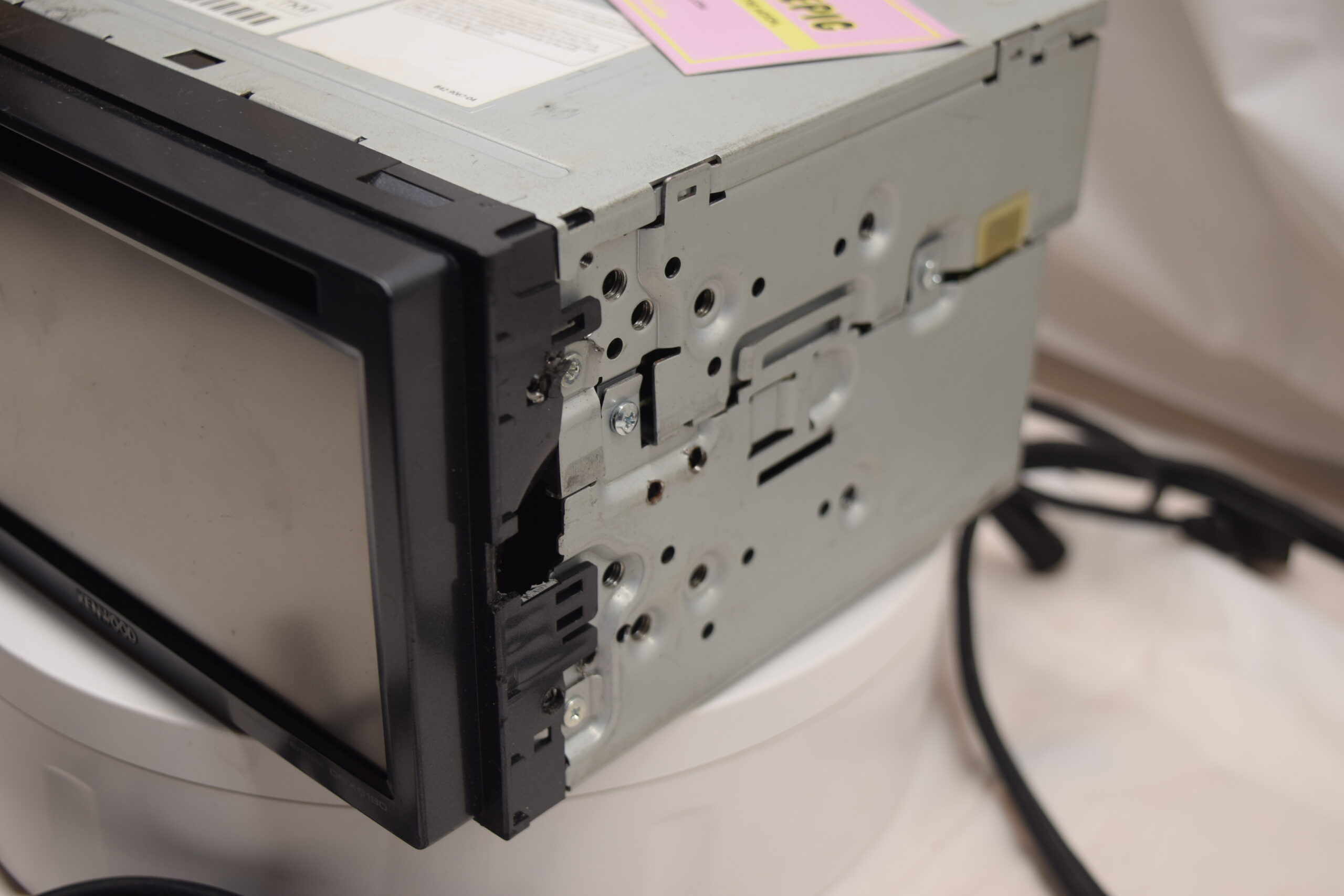 Kenwood Dnx6180 . Unsure of condition. Pulled out of a car to put stock radio back in. Has broken plastic on side of bezel.