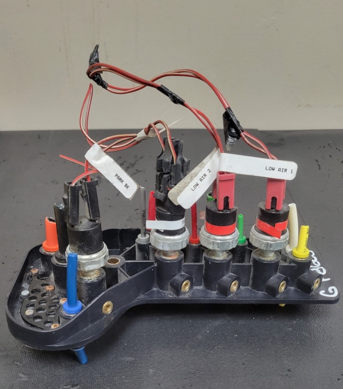 Air Manifold 1221425001 with switches – Freightliner Cascadia  for sale. We have a lot of different parts for Cascadia, and Volvo, just let me know what you need. We are located in Lake Bluff, IL. Second location Bridgeview IL, for pickup parts only. Delivery available.