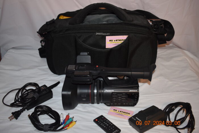 Panasonic AG-AC90 Full HD Professional Camcorder . I am including battery charger, camcorder power supply, battery,64GB memory card, remote control, composite out cables, and a nice carrying bag.
