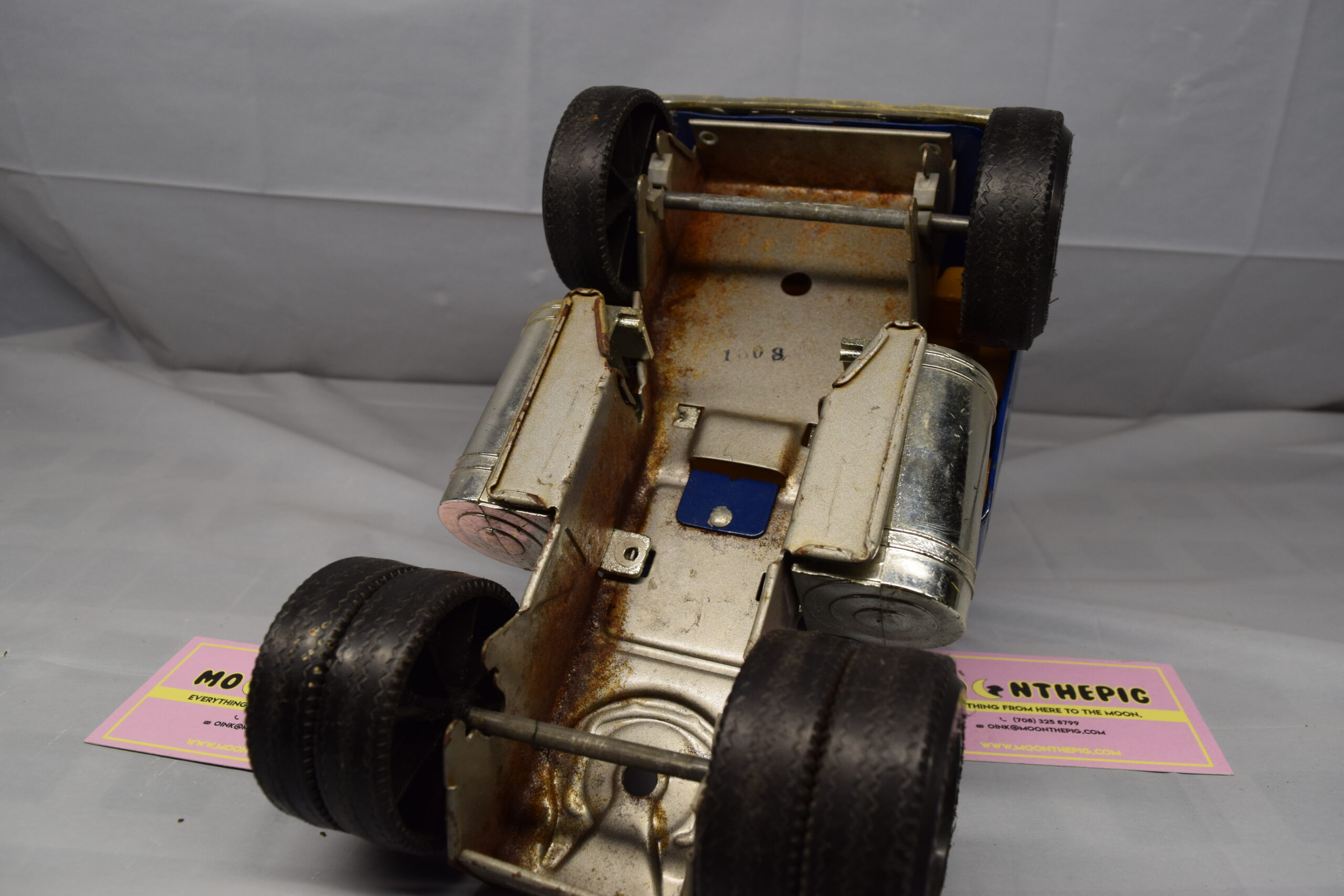 Vintage International Blue Truck. One of the plastic clips is missing to hold the axle (please view photo).